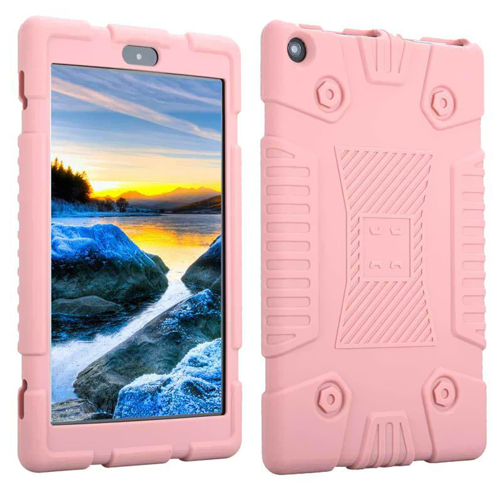 This tablet case is made of premium silicone with soft interior case, which will perfectly protect your device from knocks, dust, damage, scratches, so your tablet will be well protected and looking good for long sessions. The super design allows for full access to touch screen, side buttons, charging, headset and others.
